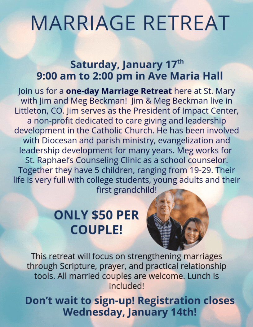 Sign-up on Jan. 17th & Jan. 18th after all Masses